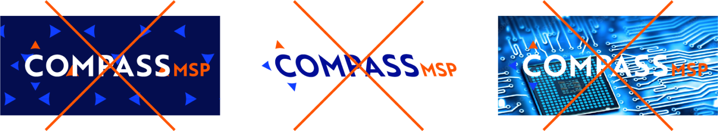 In the logo, 'Compass' is displayed in Type Blue, while 'MSP' stands out in Solutions Orange, emphasizing its vital role within our brand identity.